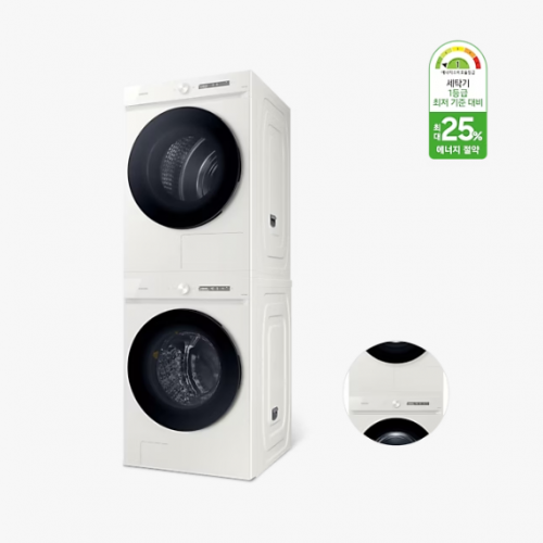 [삼성] BESPOKE 그랑데 AI 21kg + 17kg [올인원컨트롤] + 상단 설치 키트 (WF21D17CEEC)